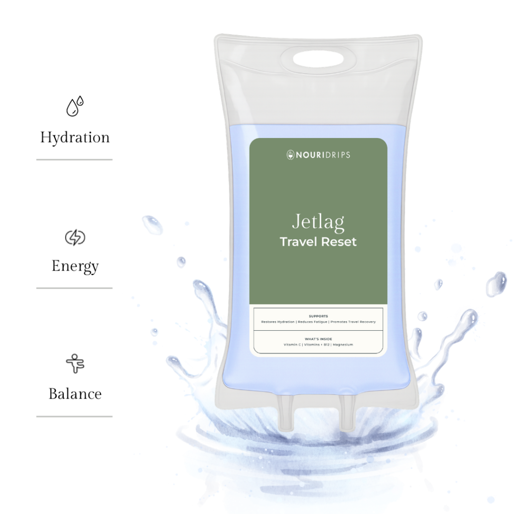 The Jet Lag Reset restores hydration, improves clarity, and helps you transition smoothly into your new time zone — delivered directly to your home or hotel.